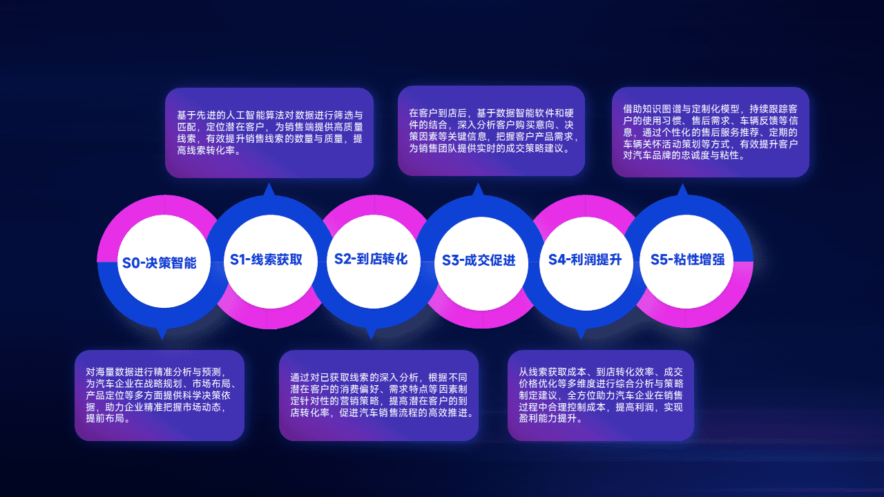 通过拓宽潜在客户来源、、、优化线索分配并提高到店转化率,,以增强销售效率。。。同时,,,利用线索数据不断优化分析模型,,,有效提升转化率,,扩大营销影响力。。